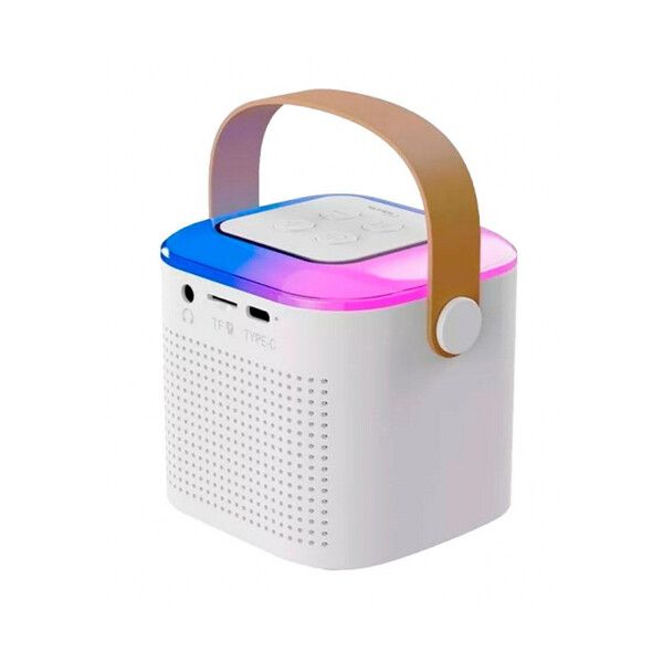 ¡Convierte cualquier lugar en un escenario con este mini parlante karaoke! Con sonido potente, efectos de voz divertidos y luces LED que crean el ambiente perfecto, es ideal para fiestas, reuniones familiares o simplemente para disfrutar de tu música favorita. Incluye 2 micrófonos para que cantes sin límites!