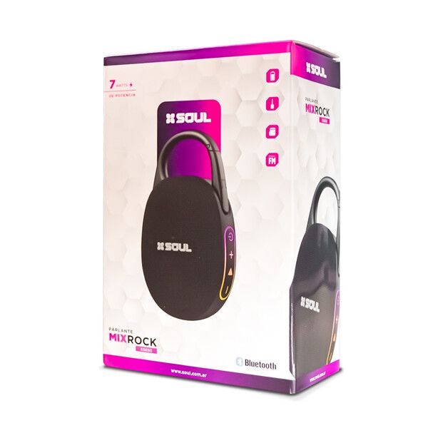 El parlante SOUL XS650 MIX ROCK es ideal para llevar tu música a todos lados. Con una potencia de 7W, ofrece un sonido claro y potente en un formato compacto y fácil de transportar.