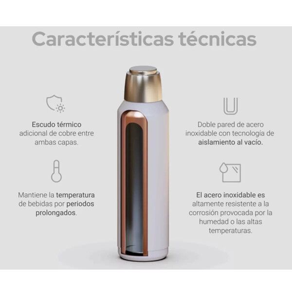 Este termo destaca por su excepcional capacidad de conservación, manteniendo tus bebidas frías o calientes hasta por 24 horas. Ya no tendrás que preocuparte por la temperatura de tus bebidas, ya que el Termo Bremen asegura que cada trago sea una experiencia placentera.