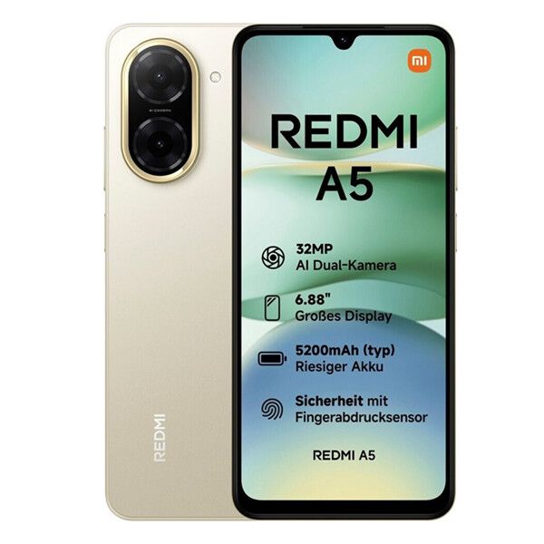 El Xiaomi Redmi A5 cuenta con una pantalla HD+ de 6.88 pulgadas con tasa de refresco de 120Hz y está potenciado por un chip Unisoc T7250 con hasta 3GB de RAM y 64GB de almacenamiento. Su cámara trasera dual tiene un sensor principal de 32MP, se alimenta de una batería de 5200 mAh, tiene lector de huellas y corre Android 15 (Go Edition).