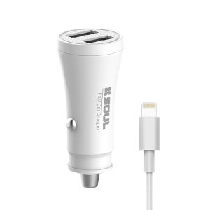 CARGADOR 12V USB DUAL 10W (2.4A) + CABLE IPHONE
